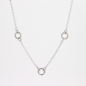 立体感のあるチェーンが連なる「ループ」をモチーフにした、全長52㎝のジュエリーです。本体と金具にK18ホワイトゴールドが使われているので、高級感とエレガントさが際立つネックレスに仕上がっています。