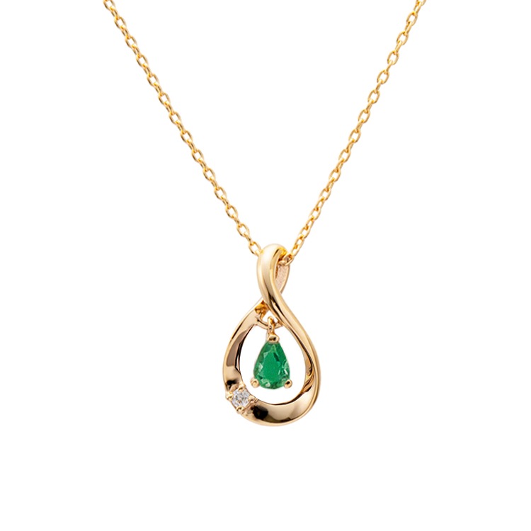 ひねりを効かせたドロップに誕生石が揺れる人気のバースデーシリーズ!! 5月の誕生石エメラルドがイエローゴールドと凛とした大人の表情を生み出し魅力的な煌めきを放ちます。