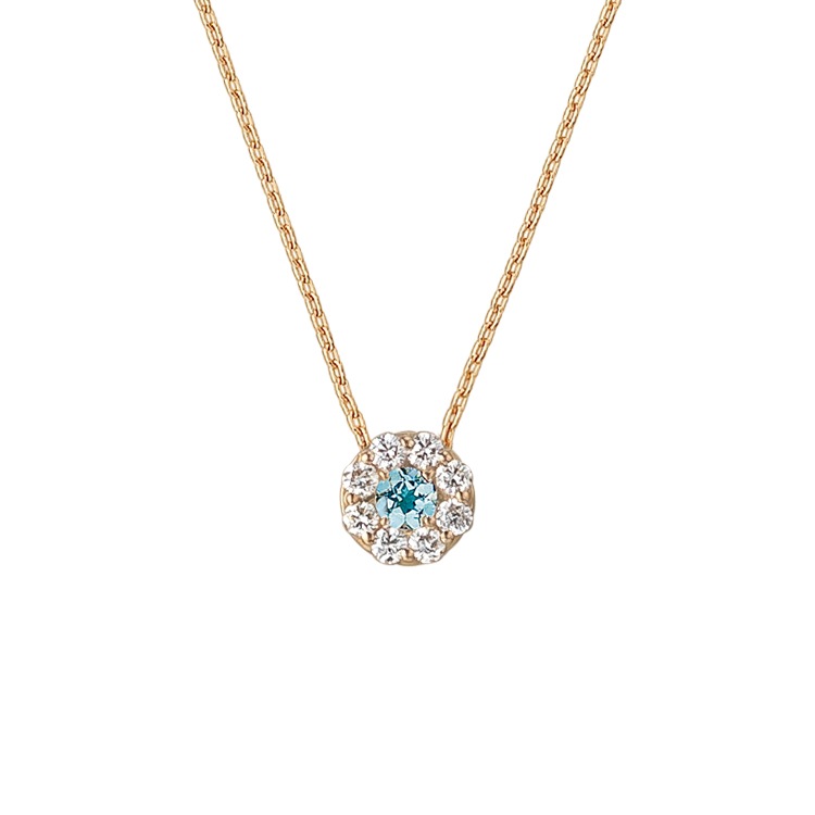 アクアマリンの周りにキラキラのダイヤモンドがセッティングされたシンプルデザイン。 素材もK18を使用した高品質なモデルでプレゼントでも人気のある商品です。