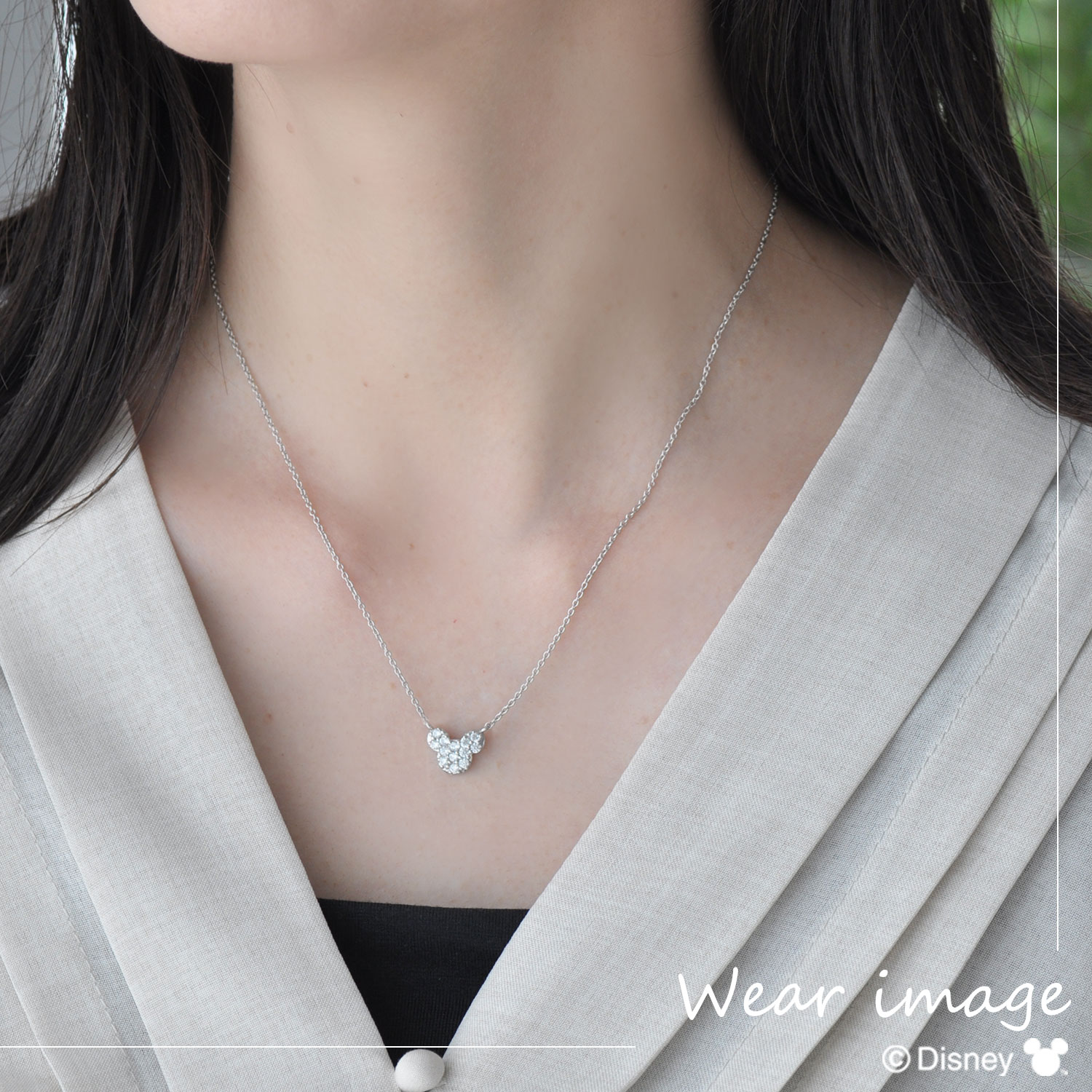ディズニー・キャラクターズ・ジュエリー 敷き詰められた石がきらめく贅沢な造りのペンダント。 シックで大人っぽいデザインなので、お出かけにもオフィスにも着けられます。