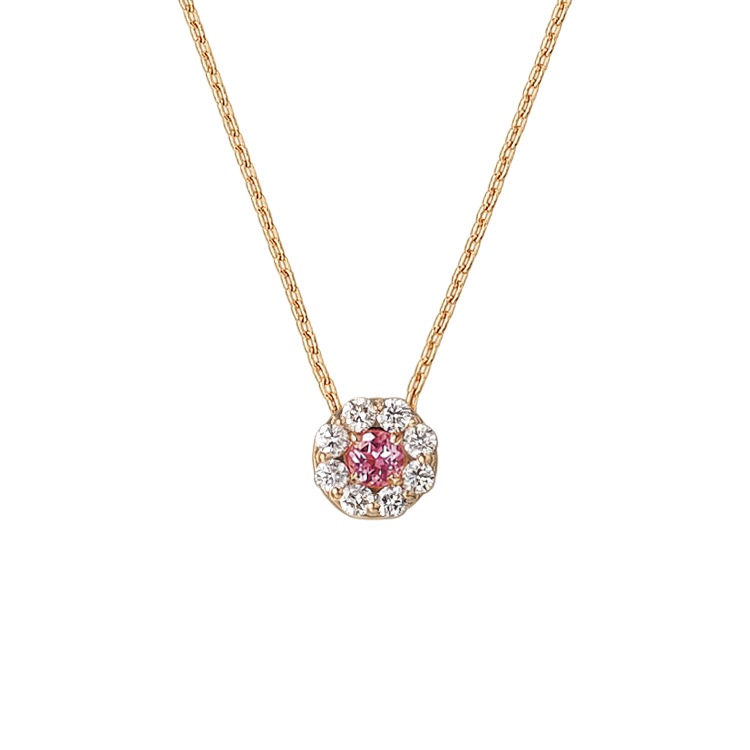 ピンクトルマリンの周りにキラキラのダイヤモンドがセッティングされたシンプルデザイン。 素材もK18を使用した高品質なモデルでプレゼントでも人気のある商品です。