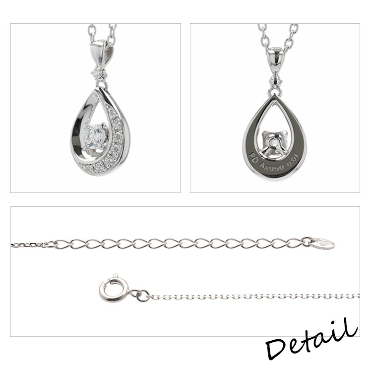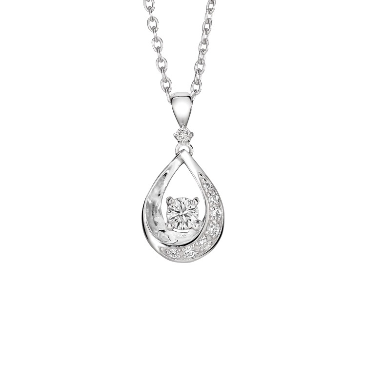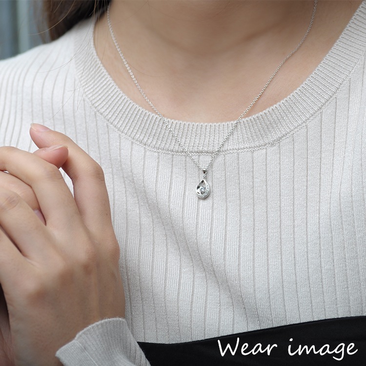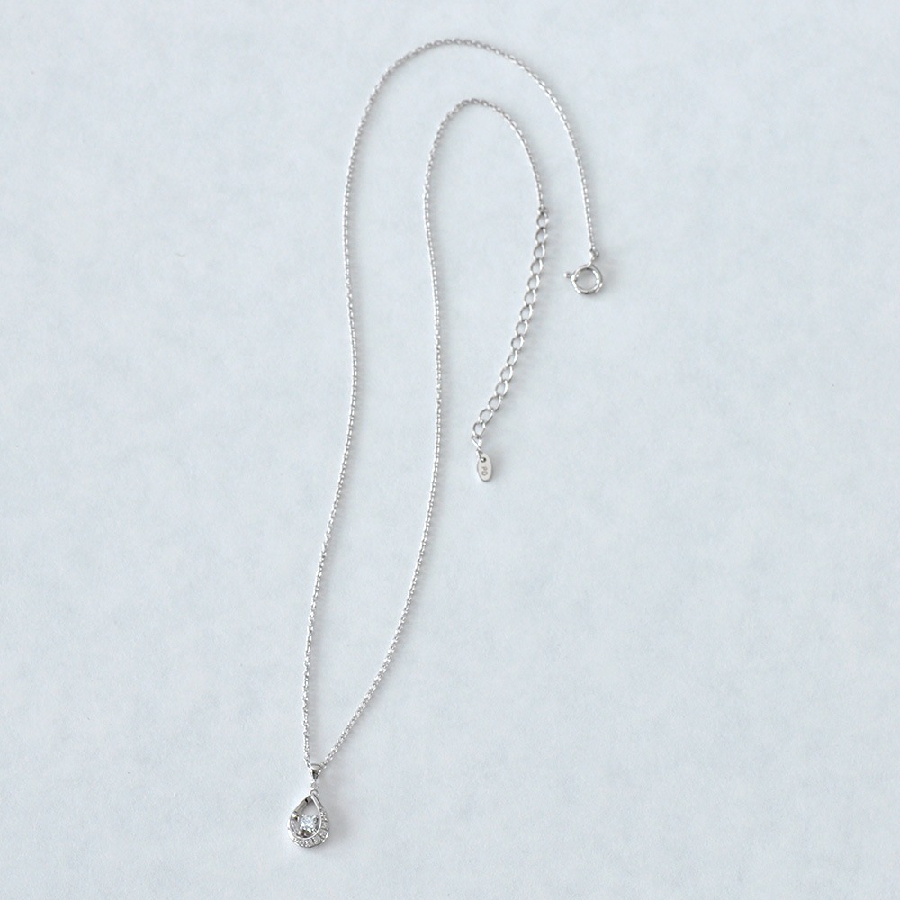 シンメトリーのドロップに大粒のキュービックが煌めき、留め具のバチカンに輝くダイヤモンドが全体をぐっと引き締め特別感のあるペンダント。