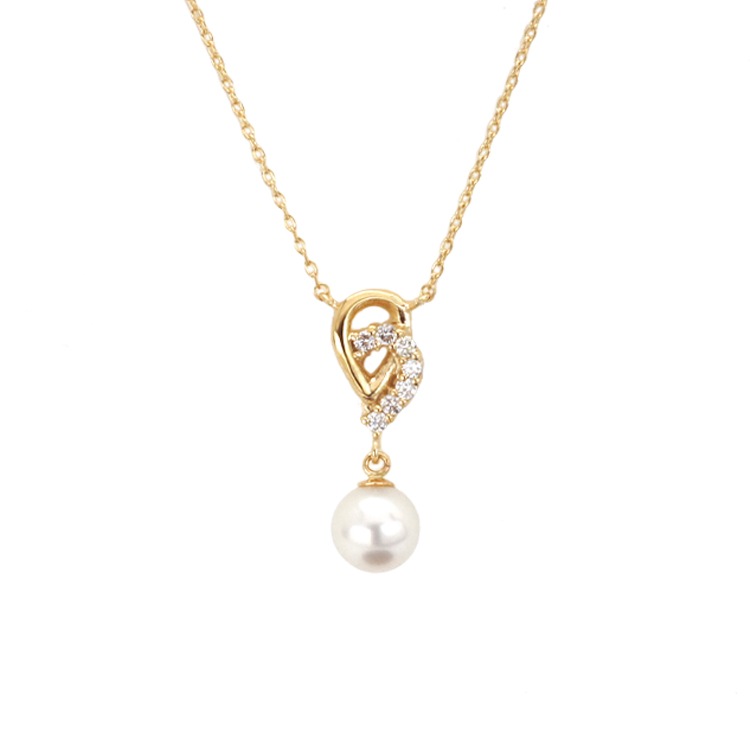 アコヤ真珠がこぼれそうな瞬間を形にしたデザイン。流動的なダイヤモンドの配置も雫がこぼれそうな動きのあるデザインに仕上がりました。