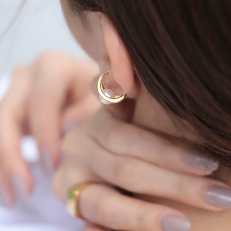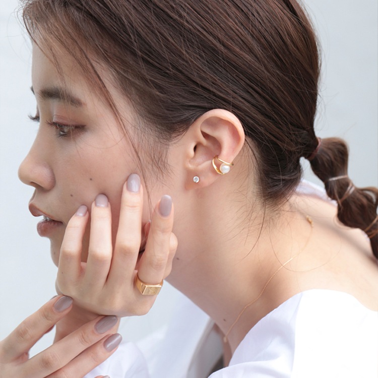 夜空に浮かぶ三日月を象ったイヤーカフ。ソリッドに耀くゴールドのラインの中に”月の涙”を意味するパールが揺らめくように輝き、華やかながらも上品な印象に。 着ける角度や見る角度で様々な表情を魅せてくれます。
