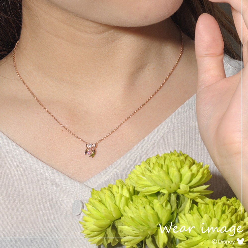 DISNEY 流れるようなリボンが上品な印象のピンクゴールドメッキネックレス。リボンの間からは、ミニーがさりげなく。大人のミニーファンにぴったりです。