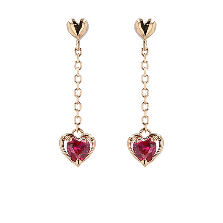 PINKY&DIANNE ハートカットの一粒キュービックが揺れ動くチェーンピアス。情熱的なルビーカラーがフェイス周りを華やかさを演出します。