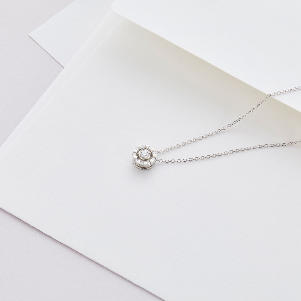 装いを選ばず日常に活躍しやすい小ぶりのサイズ。プラチナの艶とダイヤの輝きが交互に煌めきます。 「スイートテン・ダイヤモンド」は株式会社ナガホリの登録商標です。正規品の証として、すべての「スイートテン・ダイヤモンド」商品には10マークを打刻しています。