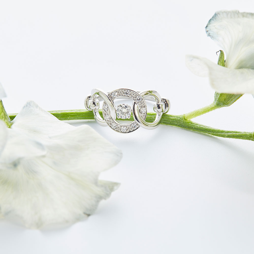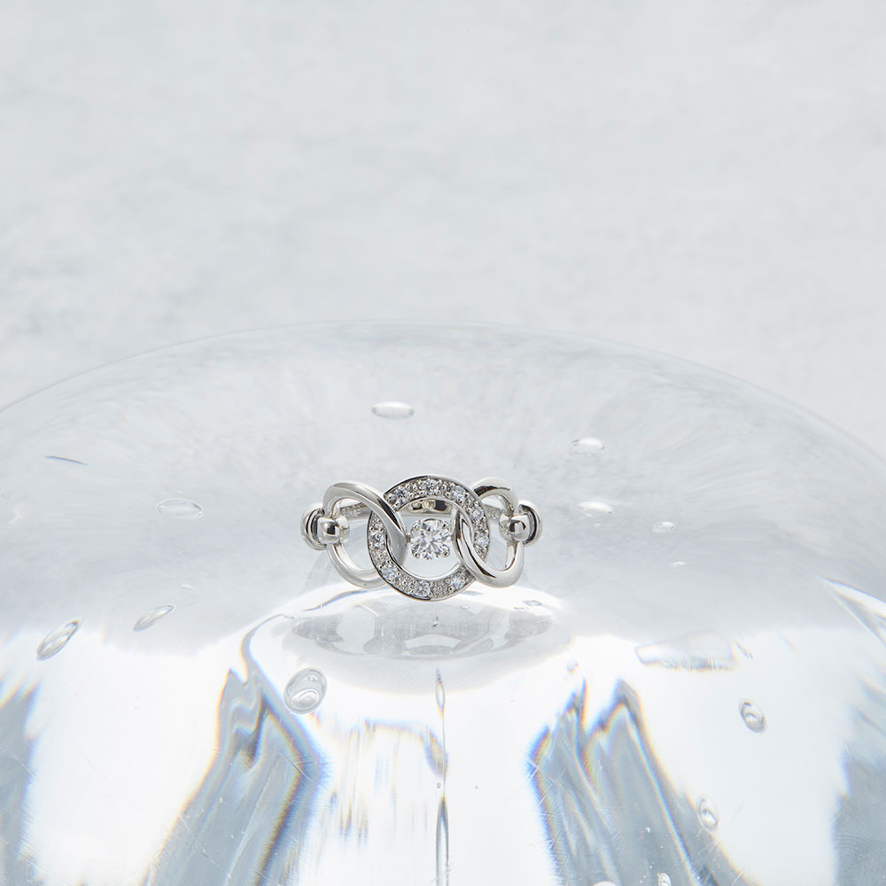 繋がりを象徴する輪(和)のデザインを重ねたボリュームリング。一本でスタイリングが決まる嬉しい一本です。 「スイートテン・ダイヤモンド」は株式会社ナガホリの登録商標です。正規品の証として、すべての「スイートテン・ダイヤモンド」商品には10マークを打刻しています。