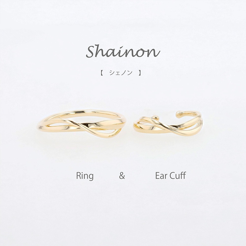Shainon -シェノン- フランス語で「連なる幸せの連鎖」を意味するシェノン・シリーズ。つけ心地の良いイヤーカフと、お揃いリングのコレクションです。洗練されたデザインは、片耳のみで華やかな存在感を放ち、ワンランク大人のセンスアップへ。
