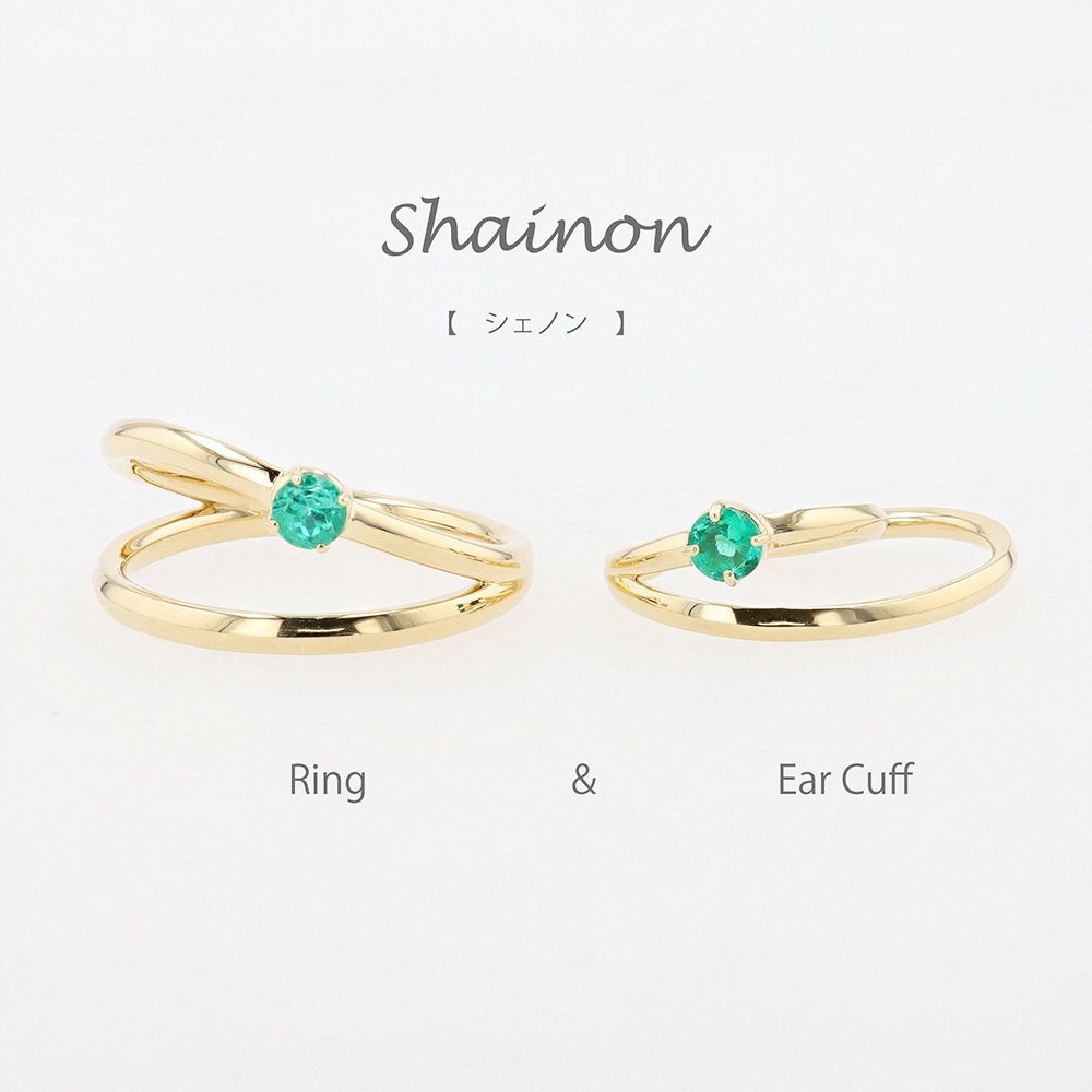 Shainon -シェノン- フランス語で「連なる幸せの連鎖」を意味するシェノン・シリーズ。つけ心地の良いイヤーカフと、お揃いリングのコレクションです。洗練されたデザインは、片耳のみで華やかな存在感を放ち、ワンランク大人のセンスアップへ。
