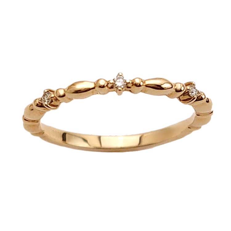 細身のラインにダイヤモンドがキラリときらめくデイリーに使えるリング。ほんのり漂うアンティーク感が上品な印象を与えてくれます。他のリングとの重ね着けもオススメです。