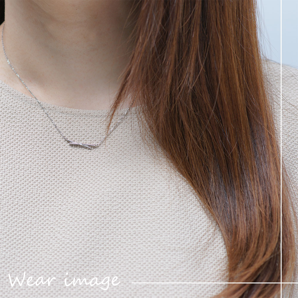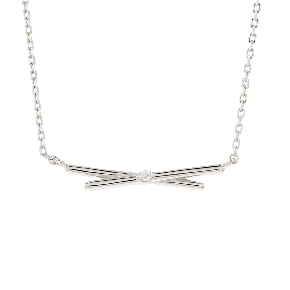 PINKY&DIANNE 交差したクロスデザインはリボンにも見えるスッキリライン。中心にはダイヤモンドでランクアップ!ペンダント ネックレス クロス リボン ダイヤモンド ベーシック シンプル PINKY&DIANNE