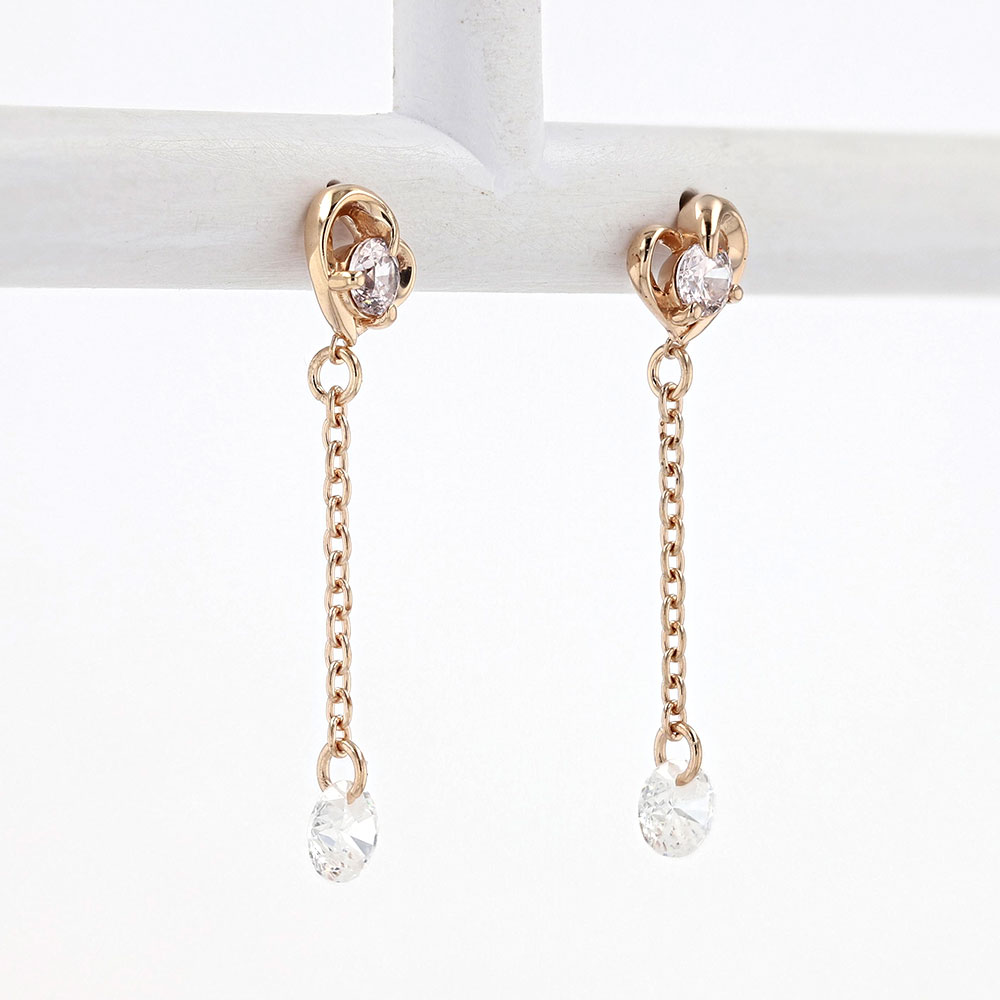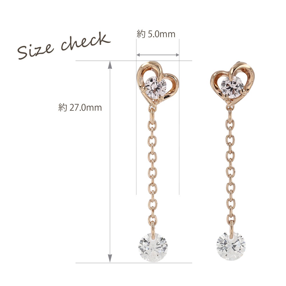 PINKY&DIANNE ハートフォルムの中心にはキュービックジルコニア。包み込むデザインは想いを込めたギフトにピッタリです。動きに合わせて揺れるチェーンは、先端にも石をセットし輝きをもたらします。