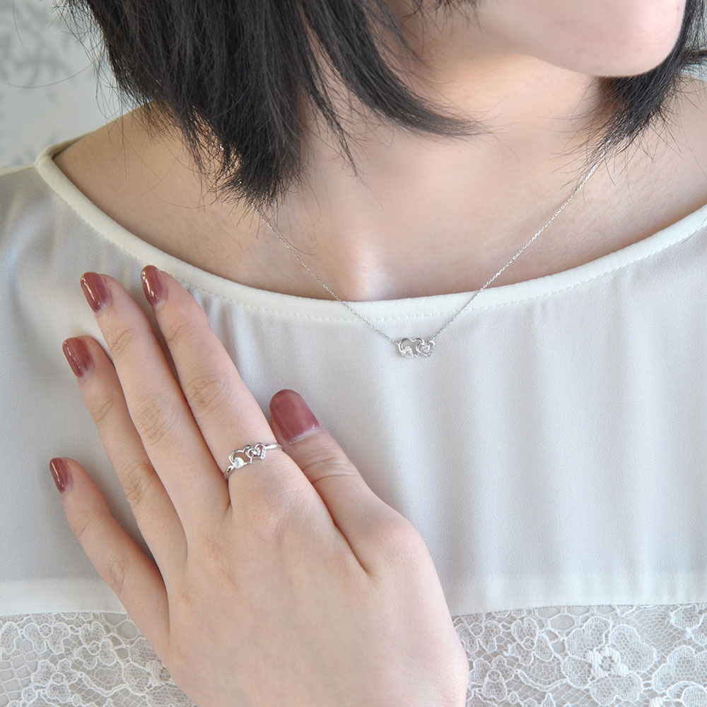 PINKY&DIANNE ダブルハートにホワイトトパーズをあしらった大人っぽく清楚な印象のペンダントです。