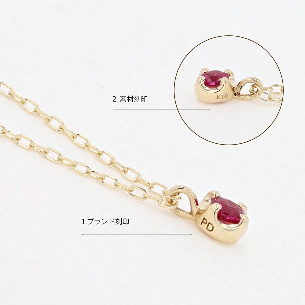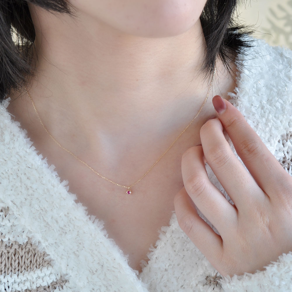 PINKY&DIANNE ルビーを1石留めたプチペンダント。裏面のハートの透かしデザインは、遊び心ある可愛さです。